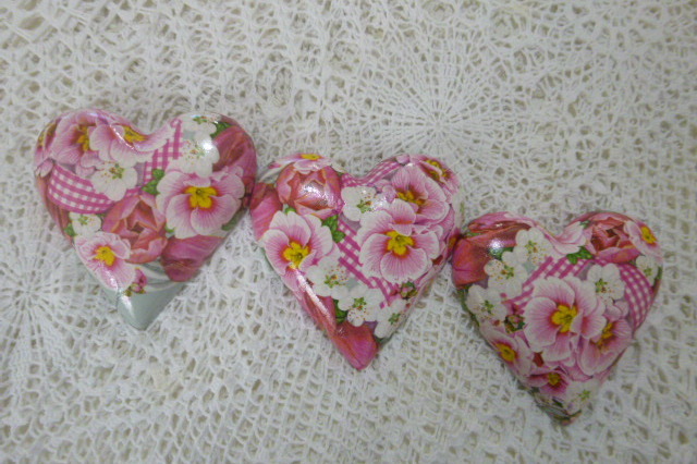 Set of 3 Pink Pansy Hearts